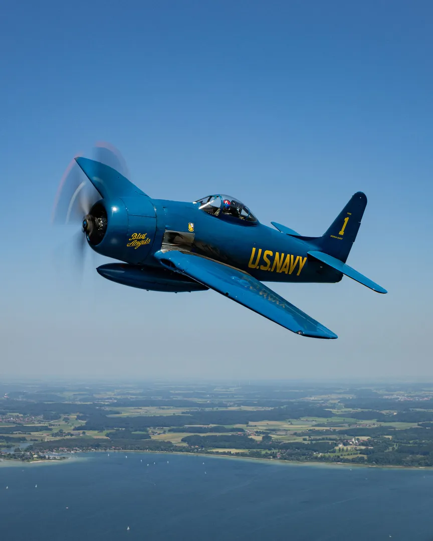 Die von den Flying Bulls erworbene Maschine BuNo 121776 (Bureau of Aeronautics Number) sticht mit ihrer tiefblauen Lackierung sofort ins Auge und erinnert damit an ihre Zeit als Flugzeug der Blue Angels. Zuletzt war sie im Besitz des US-amerikanischen Sammlers John O’Connor.