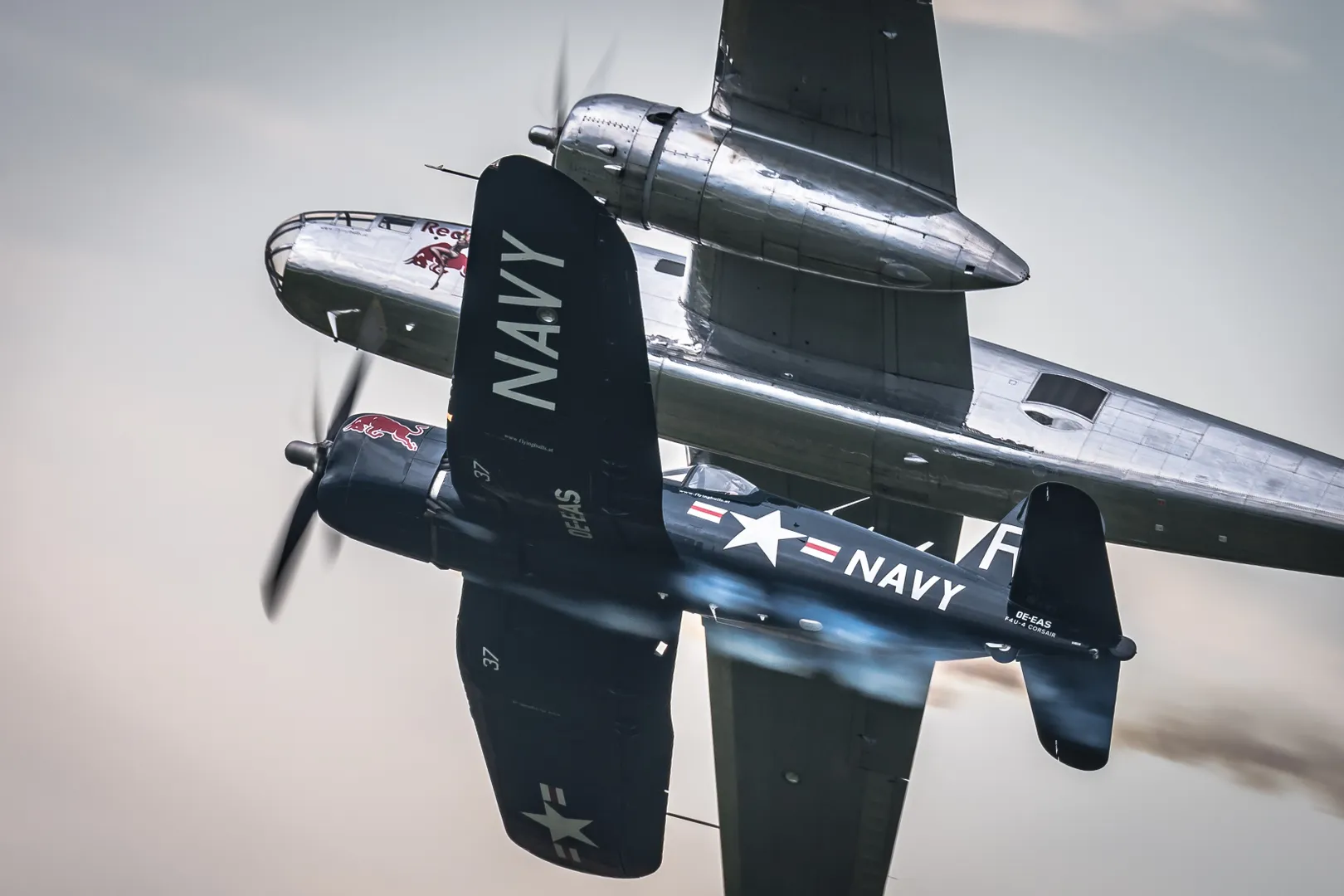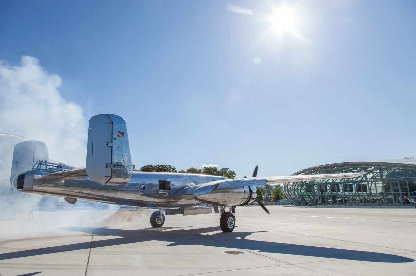 Spektakulär sind die Auftritte der „Mitchell“ der Flying Bulls noch heute. Denn sie gehört sicherlich zu einem der schönsten Exemplare der gesamten Flotte der North American. Nicht zuletzt wegen des auf Hochglanz polierten Blechs ihrer Außenhaut, die die B-25 auch heute zu dem macht, was sie einst einmal war: einer der schillerndsten Vögel der USA.