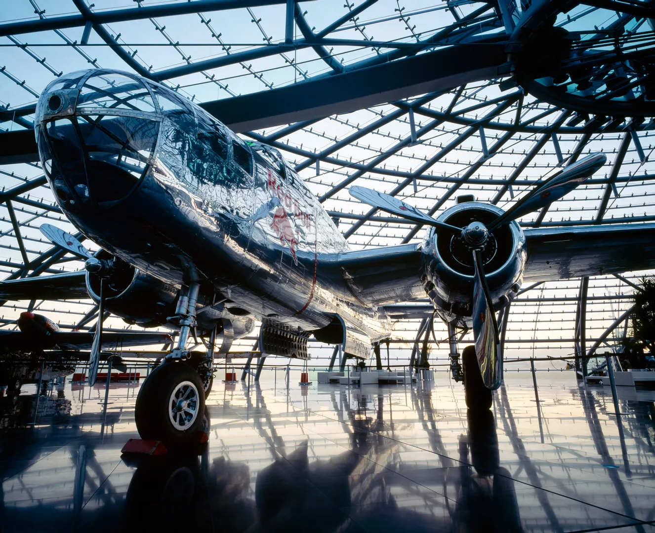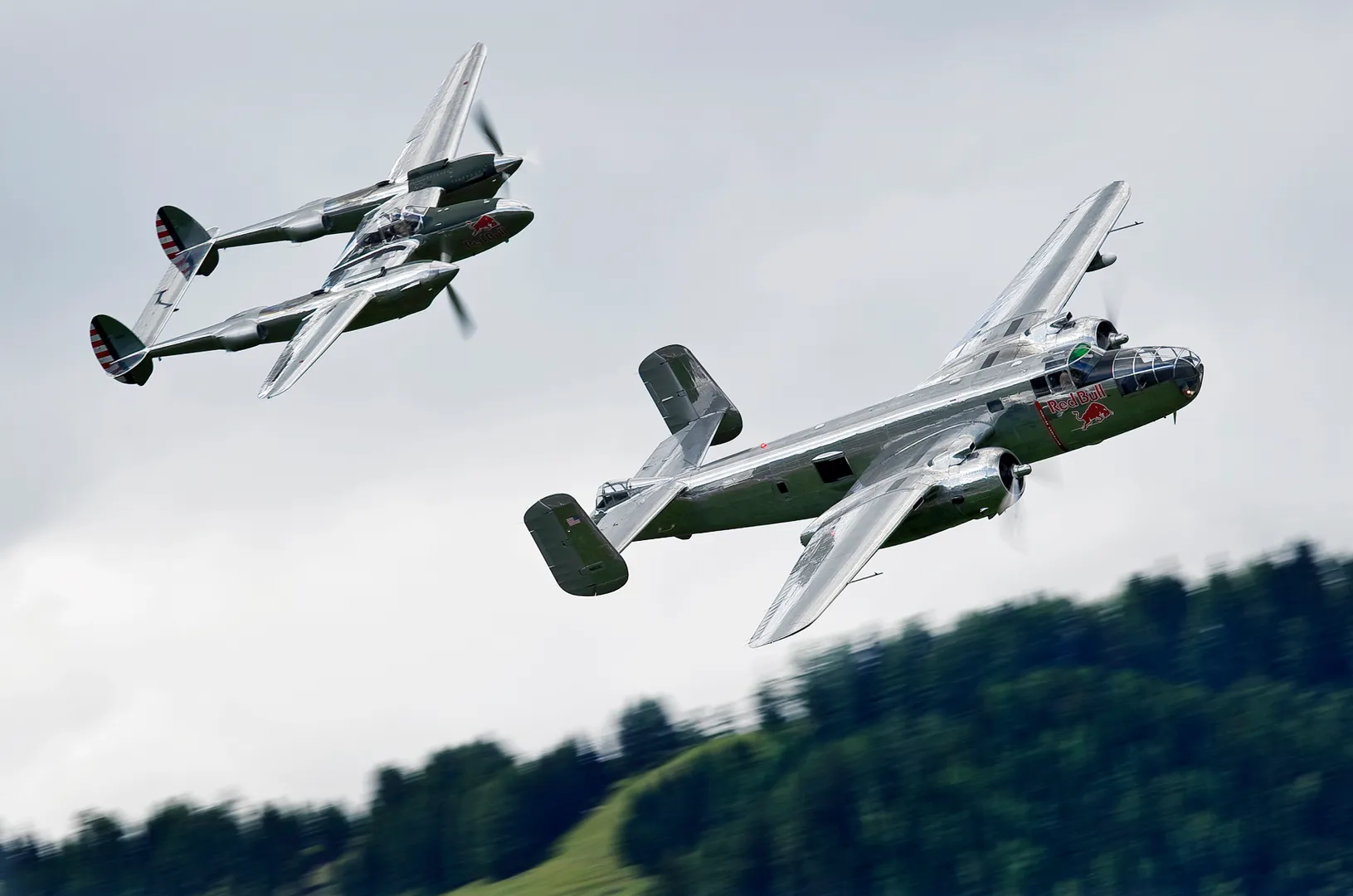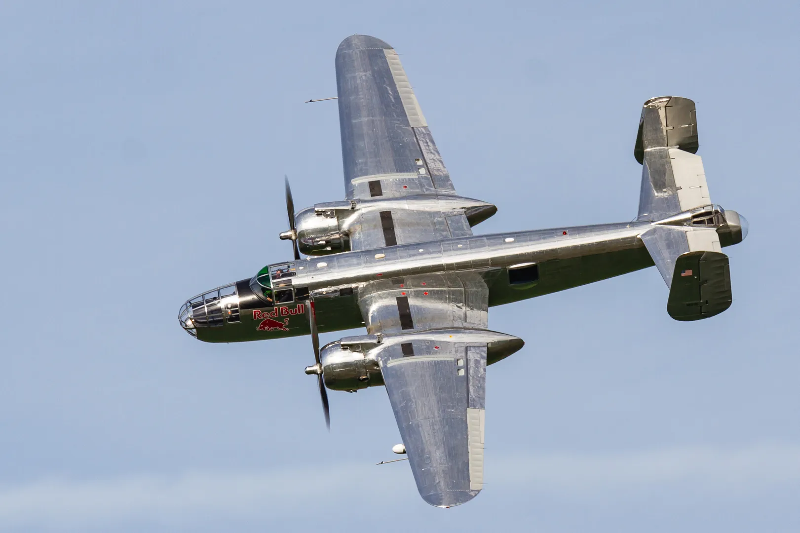 North American Aviation stellte von 1941 bis 1945 fast 10.000 Flugzeuge der Modellreihe B-25 her. Markant ist das Doppelleitwerk. Das Markenzeichen aber sind die verglaste Nase und das Heck mit den Bordkanonen. Einige Versionen trugen statt des Heckstandes einen Drehturm auf der Rumpf Ober- und Unterseite. Dieses Modell wurde beim Doolittle Raid im Pazifik eingesetzt.