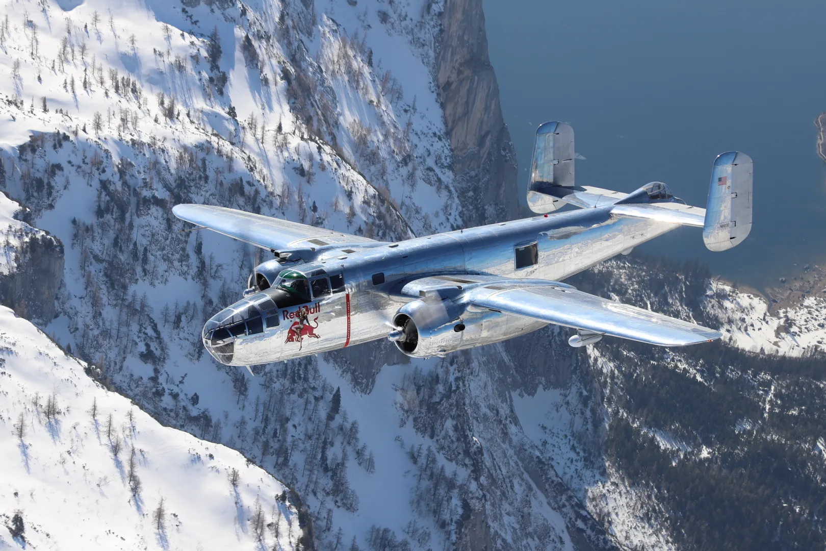 Die meistgebaute Version ist die B-25J, die auch im Besitz der Flying Bulls ist. Sie verfügte im Gegensatz zu früheren Maschinen über diverse Verbesserungen wie beispielsweise eine Enteisungsanlage. Das verglaste Heck in der entmilitarisierten Version ist eines der beliebtesten Foto- und Aussichtsplätze der Flying Bulls Maschinen. Die zwei 14-Zylinder Doppelsternmotoren der Curtiss-Wright Corporation brachten insgesamt über 3400 PS an die Propeller, die für eine maximale Geschwindigkeit von mehr als 500 km/h reichten.