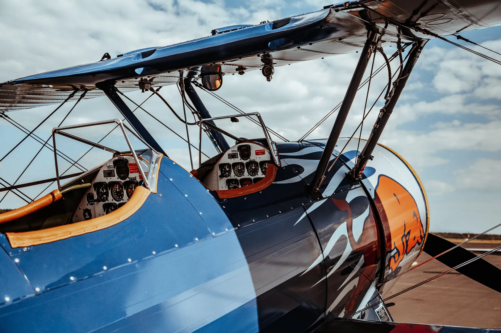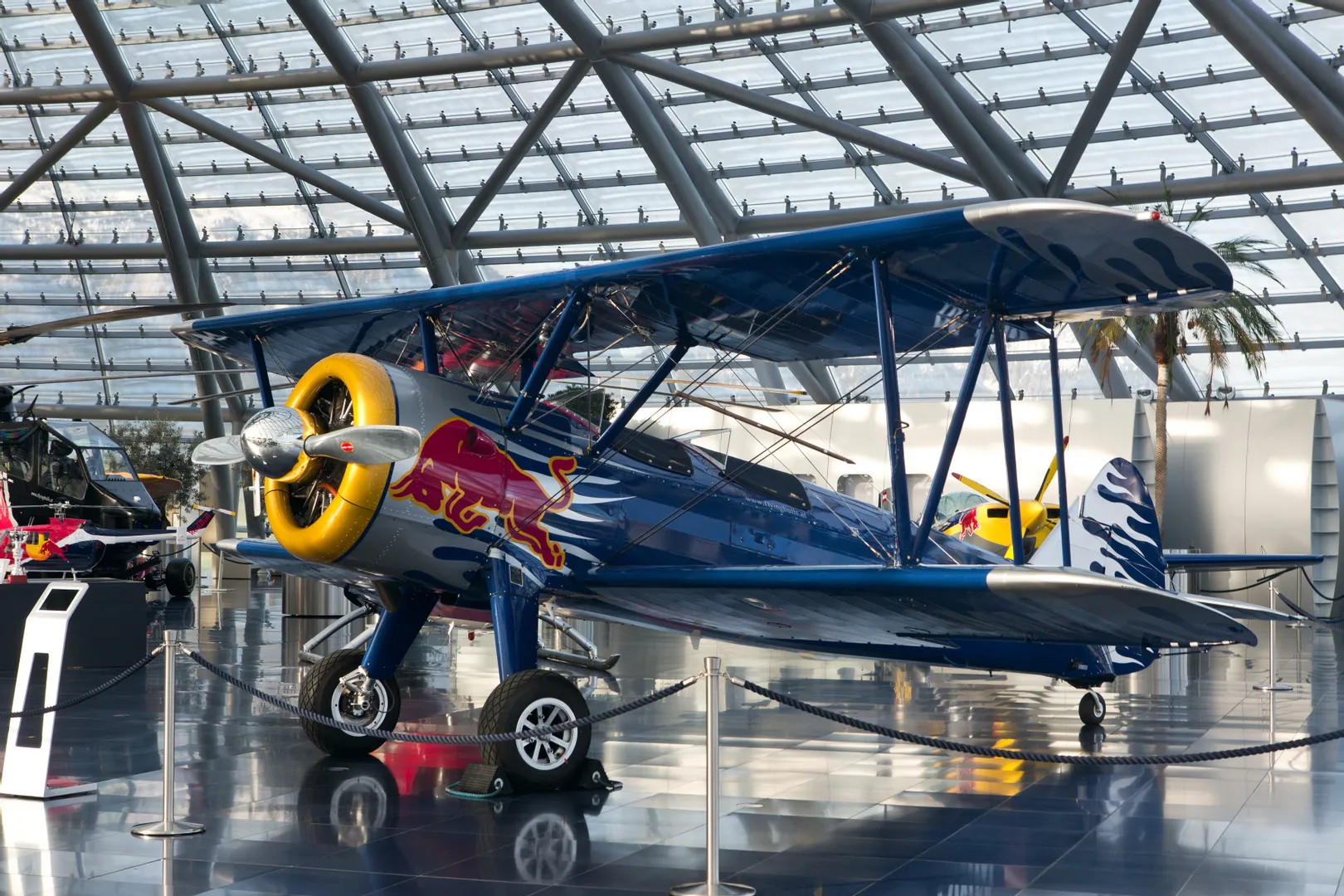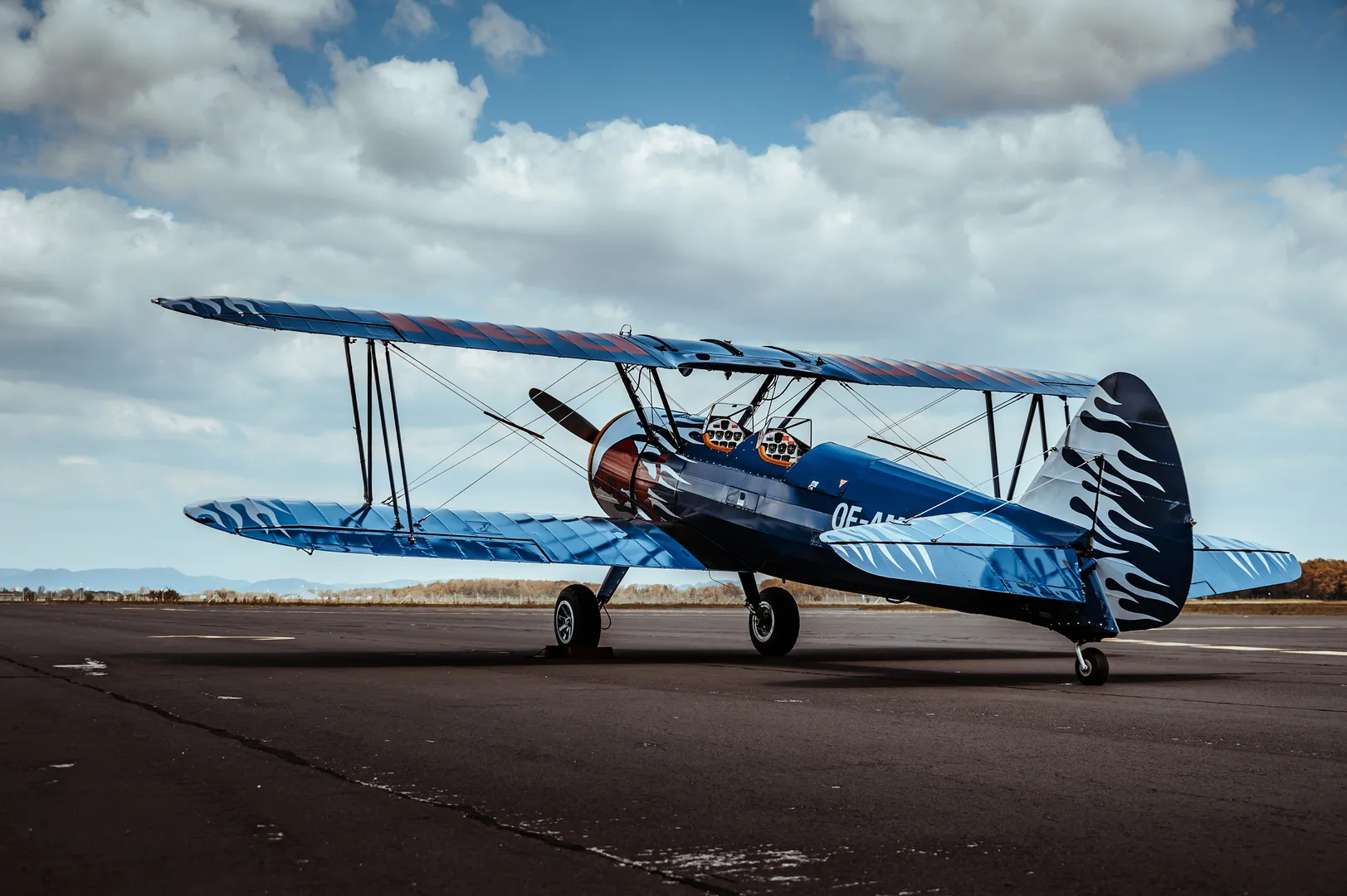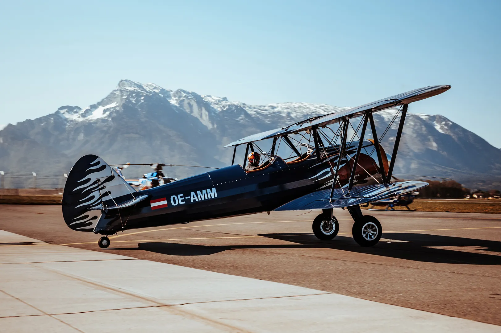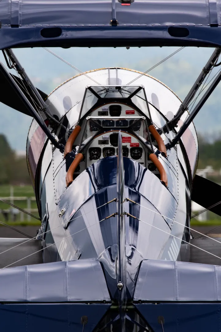 Die Boeing PT-17 Stearman versetzt nicht nur den Betrachter zurück in die Zeit der Flugpioniere – den Piloten ergeht es genauso. Mit der imposanten Doppeldeckerkonstruktion, der aggressiven Flammenlackierung und dem bulligen 9-Zylinder Sternmotor zählt die „Harley der Lüfte“ zu den meistfotografierten Flugzeugen im Hangar‑7.