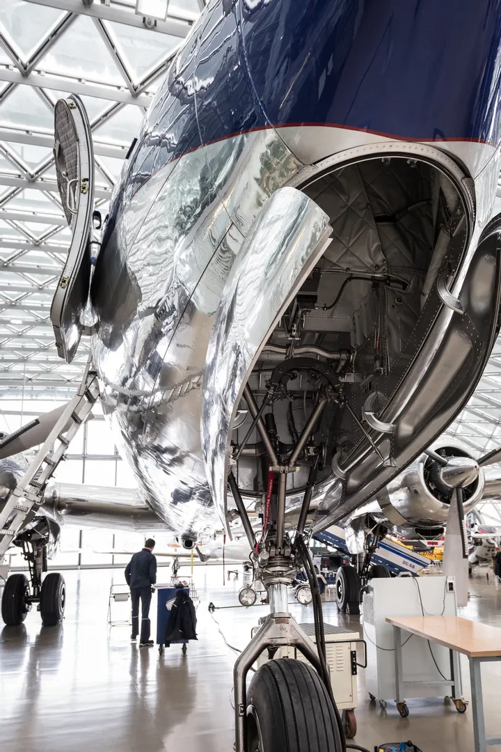 Sie ist das Kronjuwel der Flying Bulls. Ein Flugzeug, das nicht nur durch seine Größe, seinen Sound und das luxuriöse Interieur besticht, sondern vor allem durch seine einzigartige Geschichte. Staatschefs, Präsidenten und Prominente sind damit geflogen. Der damalige jugoslawische Staatschef Josip Broz Tito nutzte sie als Präsidentenmaschine und verkaufte sie nach Afrika – ehe sie Teil der Flying Bulls-Flotte wurde. Es ist etwas ganz Besonderes, an ihr zu arbeiten. Genau das wissen auch die 18 Techniker, die sich die vergangenen Monate darum gekümmert haben, sie wieder fit für den Sommer zu machen.