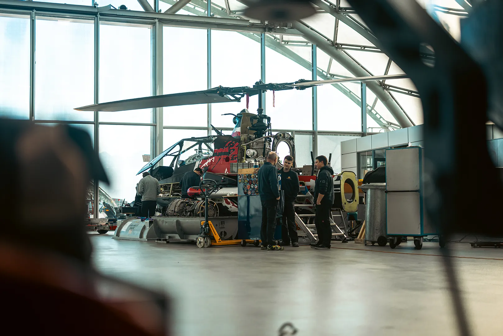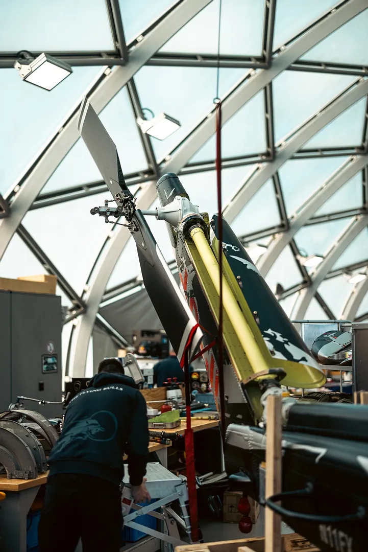Die großen Jahreswartungen werden im Winter durchgeführt, da im Sommer zahlreiche Airshows in ganz Europa für Hochbetrieb sorgen. Ein sechsköpfiges Techniker-Team kümmert sich exklusiv um die The Flying Bulls Hubschrauberflotte. David selbst ist seit mittlerweile sieben Jahren im Unternehmen und hat bereits seine Lehre im Hangar-8 absolviert. Die Frage, ob sein Lieblingshubschrauber bei der Wartung oder im Betrieb Sperenzchen macht, verneint er: „Die Bell Cobra leistet das ganze Jahr über brav ihren Dienst!“