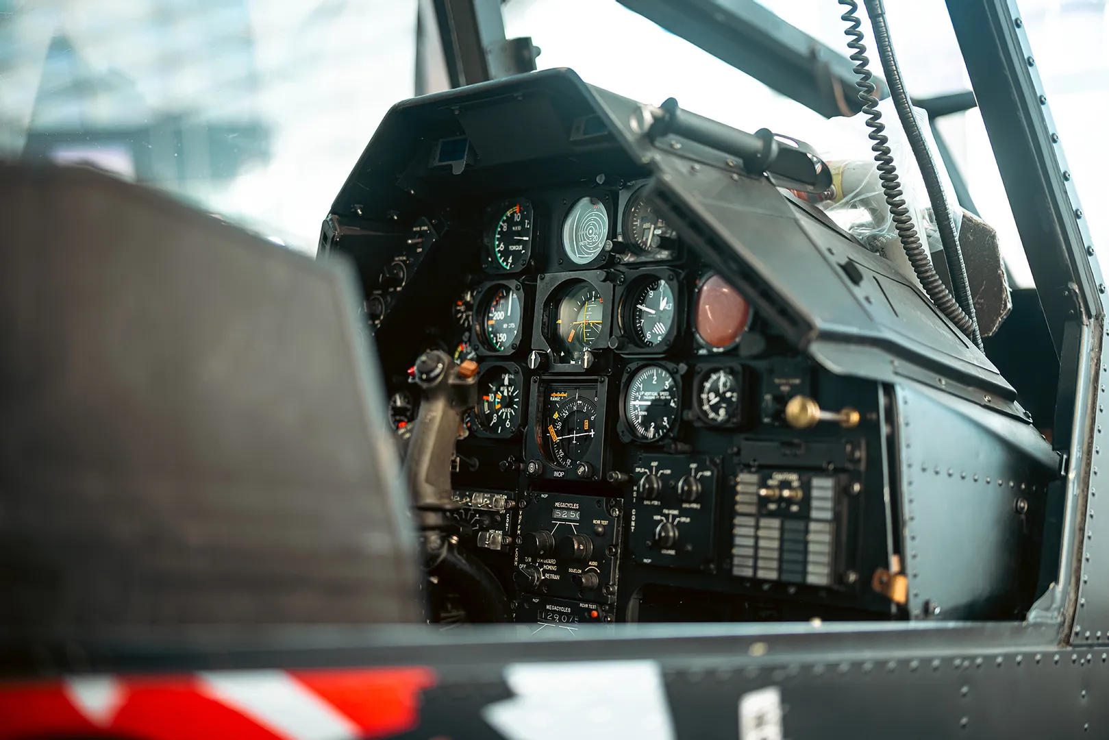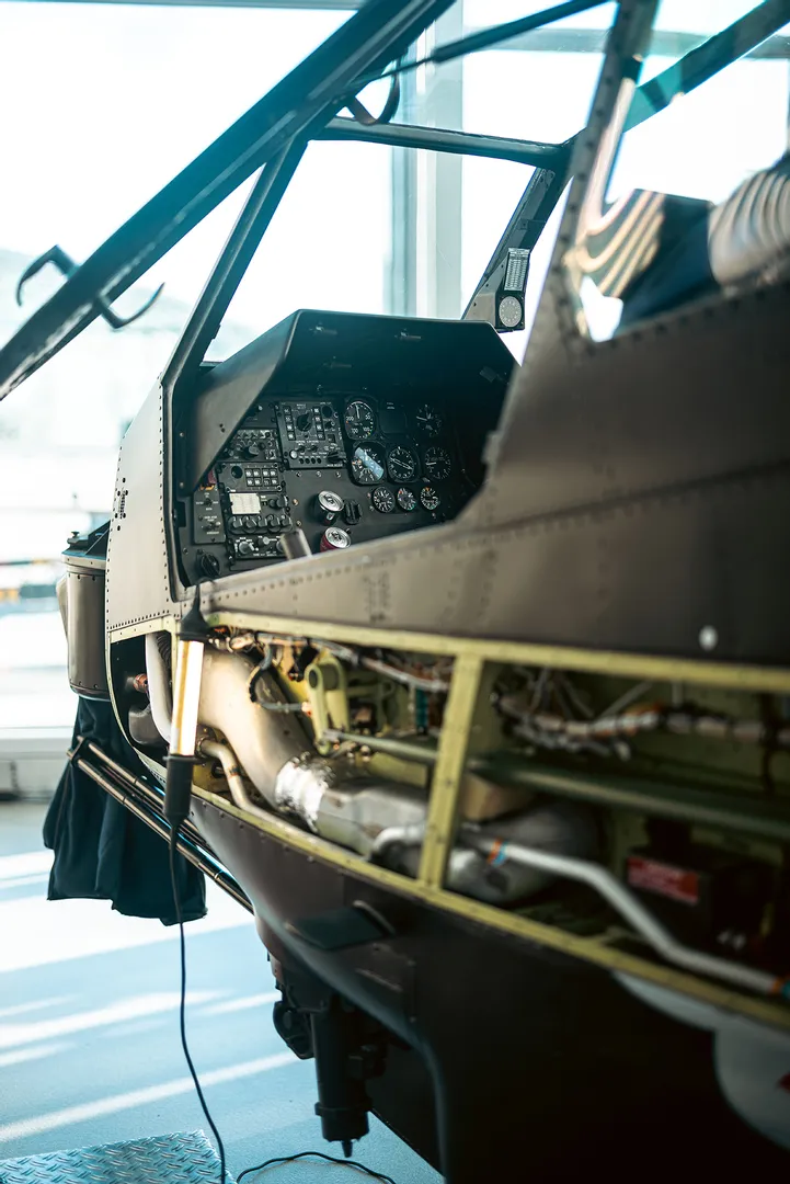 Die imposante Bell Cobra 209/AH-1F, Baujahr 1967, ist ein echtes Juwel der Flotte: Als weltweit erster reiner Kampfhubschrauber wurde sie in einer sehr schmalen Form konzipiert, um die frontale Angriffsfläche so gering wie möglich zu halten. Unverwechselbar macht sie auch ihr charakteristischer Sound: Die besondere Aerodynamik des Zwei-Blatt-Rotorsystems und die extrabreiten Rotorblätter, die mit hoher Geschwindigkeit durch die Luft schneiden, erzeugen ein typisches Schnalzen, das Cobra-Fans lieben und unter hunderten Rotoren Geräuschen heraushören.