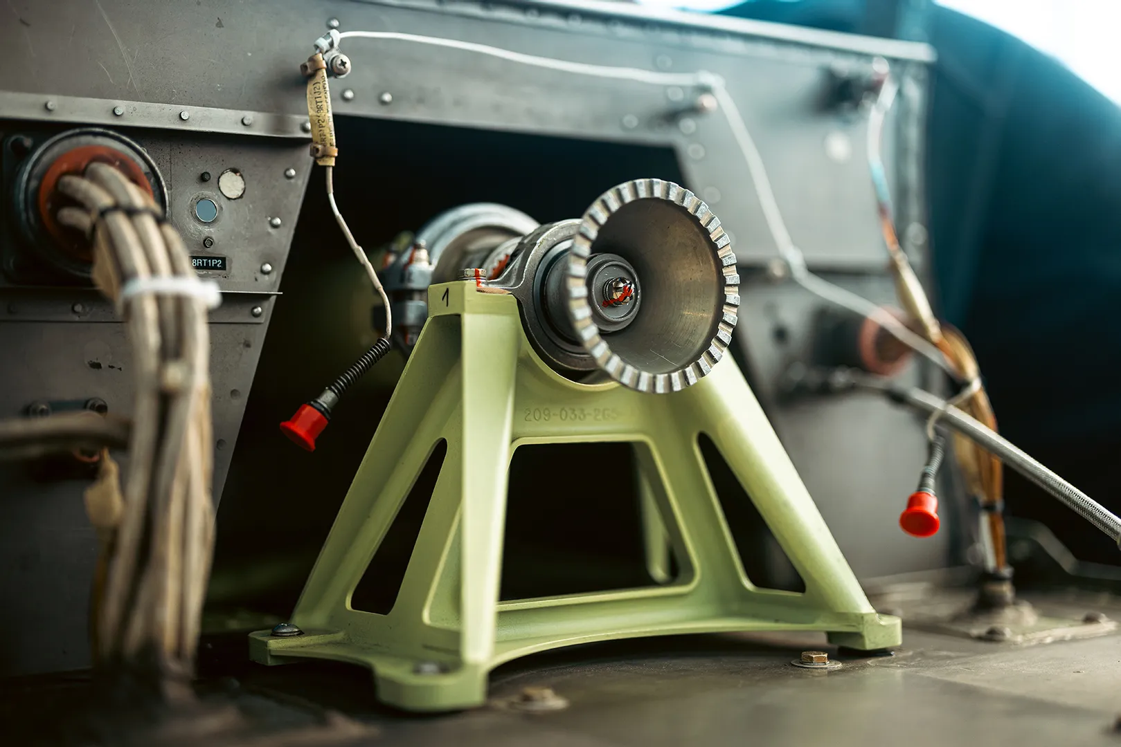 Ein neuralgischer Punkt und faszinierendes Detail an der Bell Cobra ist die sogenannte „Jesus Nut“ – die große Mutter, die den Rotorkopf sichert. Was es mit dem ungewöhnlichen Namen auf sich hat? „Nun, sollte sie je versagen und der Rotorkopf sich vom Hubschrauber lösen, bleibt nur ein letztes „Stoßgebet“, verrät David mit einem Augenzwinkern.