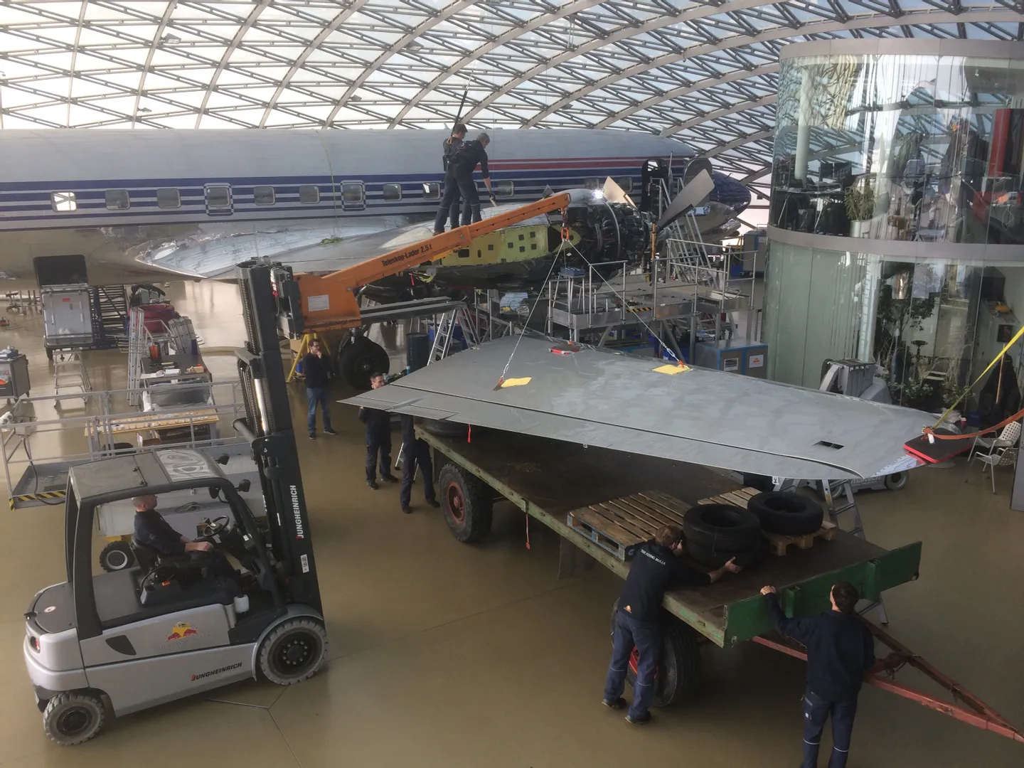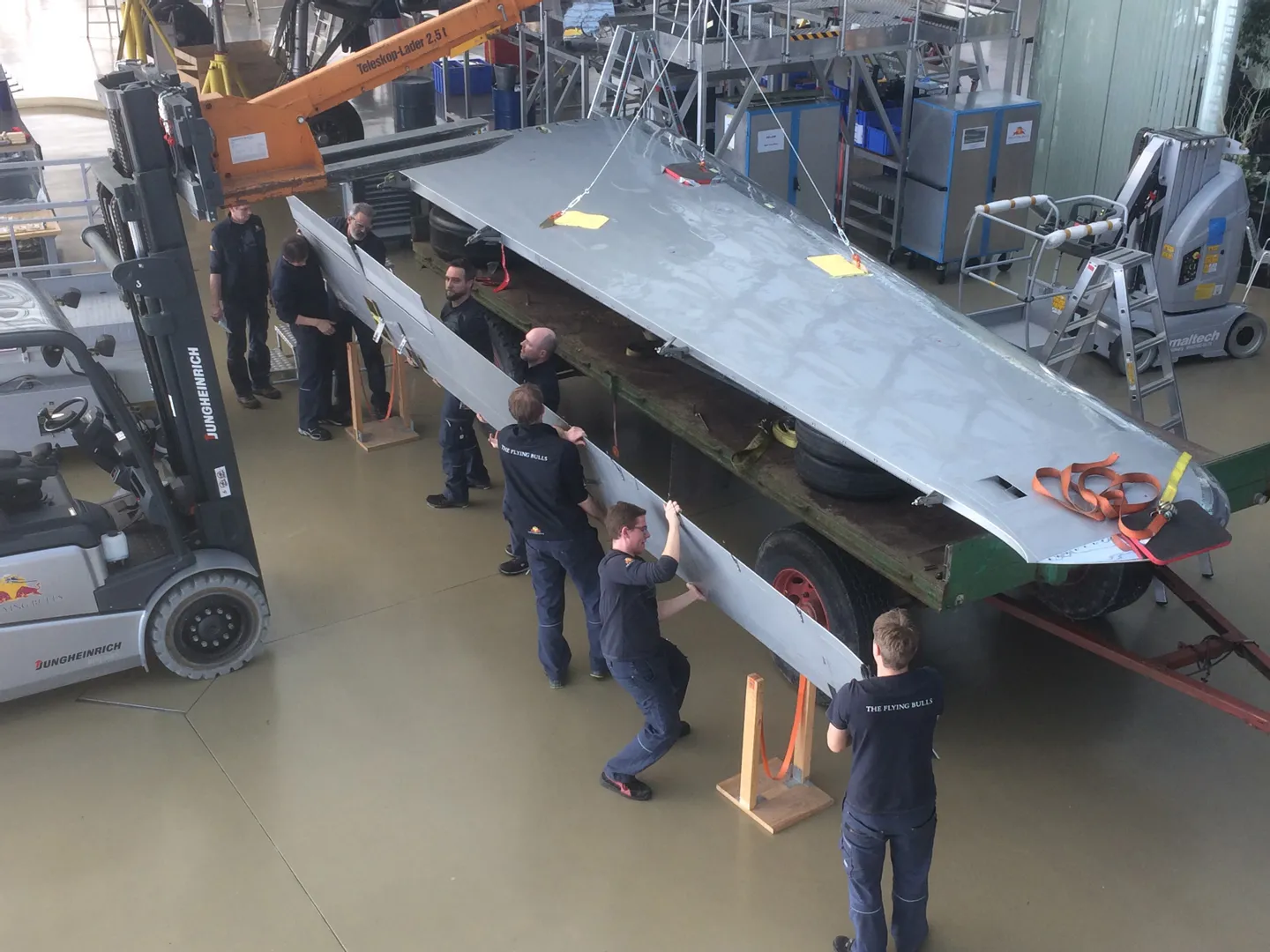 Eine große organisatorische Herausforderung: Bolzen, Verkabelung und Steuerseile wurden von unseren Technikern gelöst, ehe der Flügel dann Stück für Stück vorsichtig herabgelassen wurde.