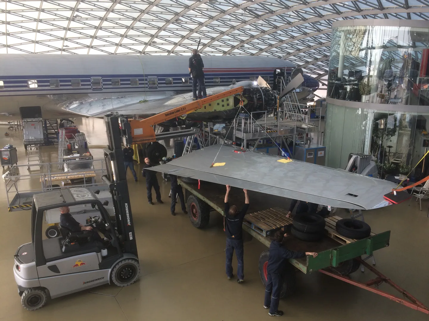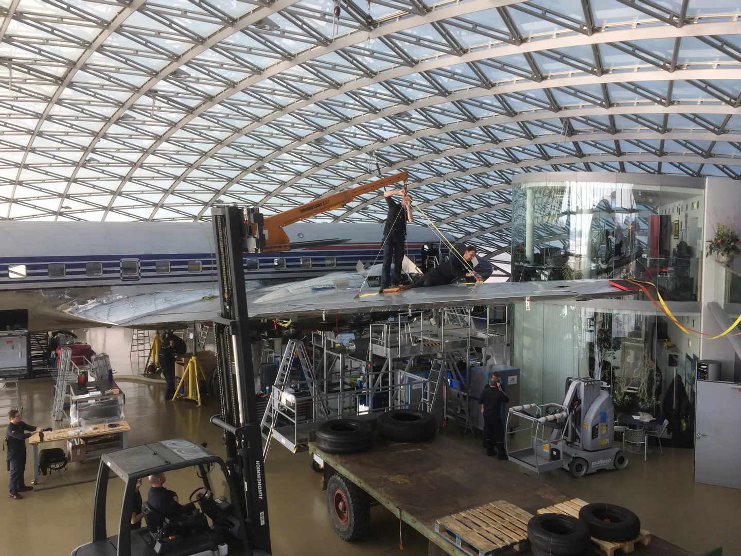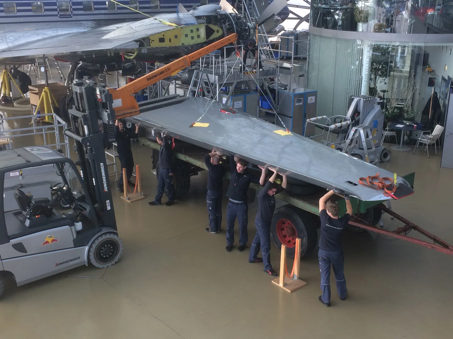 Im Zuge dieser Demontage wird in weiterer Folge der abgetragene Flügel das erste Mal seit rund 15 Jahren neu lackiert, ehe er dann wieder anmontiert wird. Durchgeführt wird diese Reparatur im Rahmen der jährlichen großen Wartung der DC6, bei welcher um die zehn Techniker rund zwei Monate beschäftigt sind.