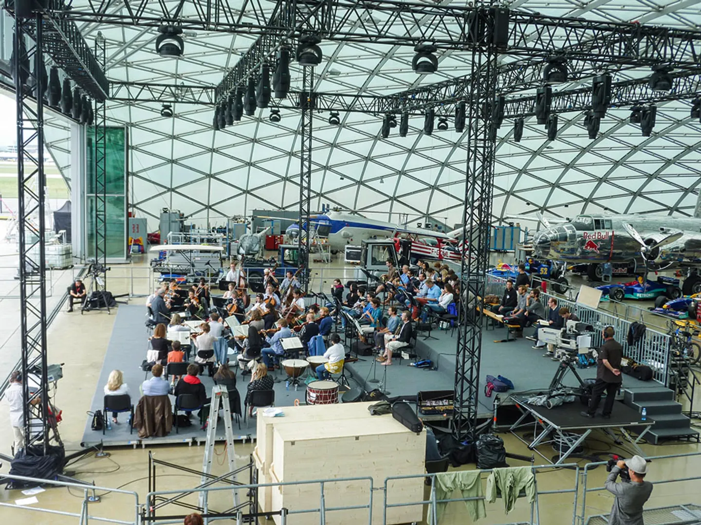 Neben der gewohnten Geräuschkulisse eines Flugzeug-Hangars genießen die Techniker der Flying Bulls gerade Sounderlebnisse der etwas anderen Art. Schließlich heißt es nächste Woche im Hangar „Vorhang auf“ für Mozarts berühmte Oper „Die Entführung aus dem Serail“ – und die Proben und Vorbereitungen dafür laufen bereits auf Hochtouren!