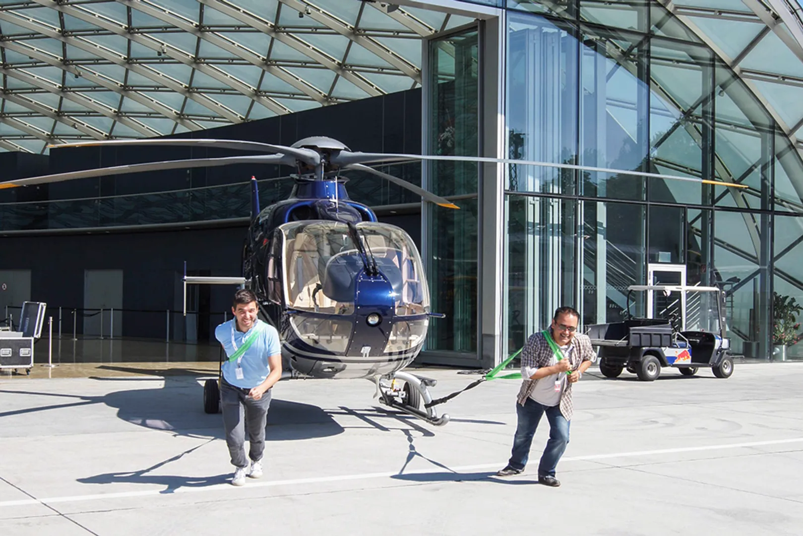 Denn als wäre ein Flugzeughangar als Opernkulisse nicht schon außergewöhnlich genug, gibt sich die Inszenierung nicht nur mit einer Bühne zufrieden, sondern verlegt das Geschehen auf elf verschiedene Schauplätze auf einem Areal von rund 17.000 m2, den Hangar-7, den Hangar-8 und das Vorfeld dazwischen.