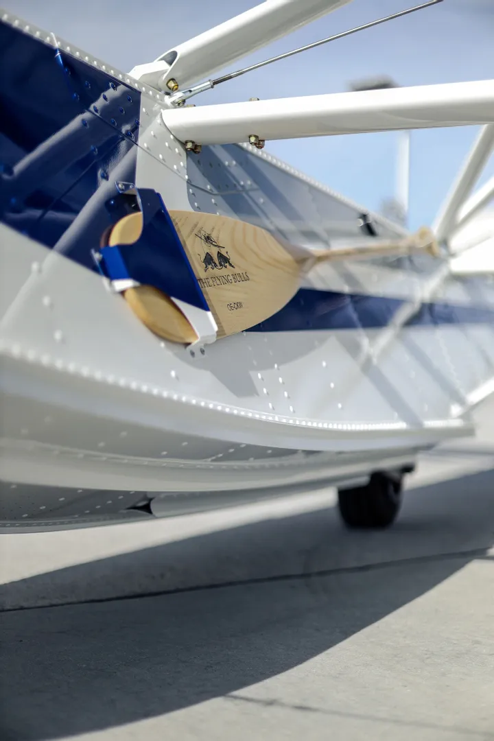 Die Aviat Husky kommt aus den USA: AVIAT HUSKY - ein sehr seltenes Modell in Europa, das mit zusätzlichen Schwimmern ausgestattet ist. Damit können die abgelegensten Orte dieser Welt erkundet werden, da das Landen auf Wasser möglich wird. Die Maschine wurde, zerlegt in ihre Einzelteile, über die halbe Welt transportiert, ehe sie von den Flying Bulls mit viel Liebe wieder aufgebaut wurde. Nun ist sie voll einsatzbereit für die kommenden Abenteuer in der Luft und auf dem Wasser.