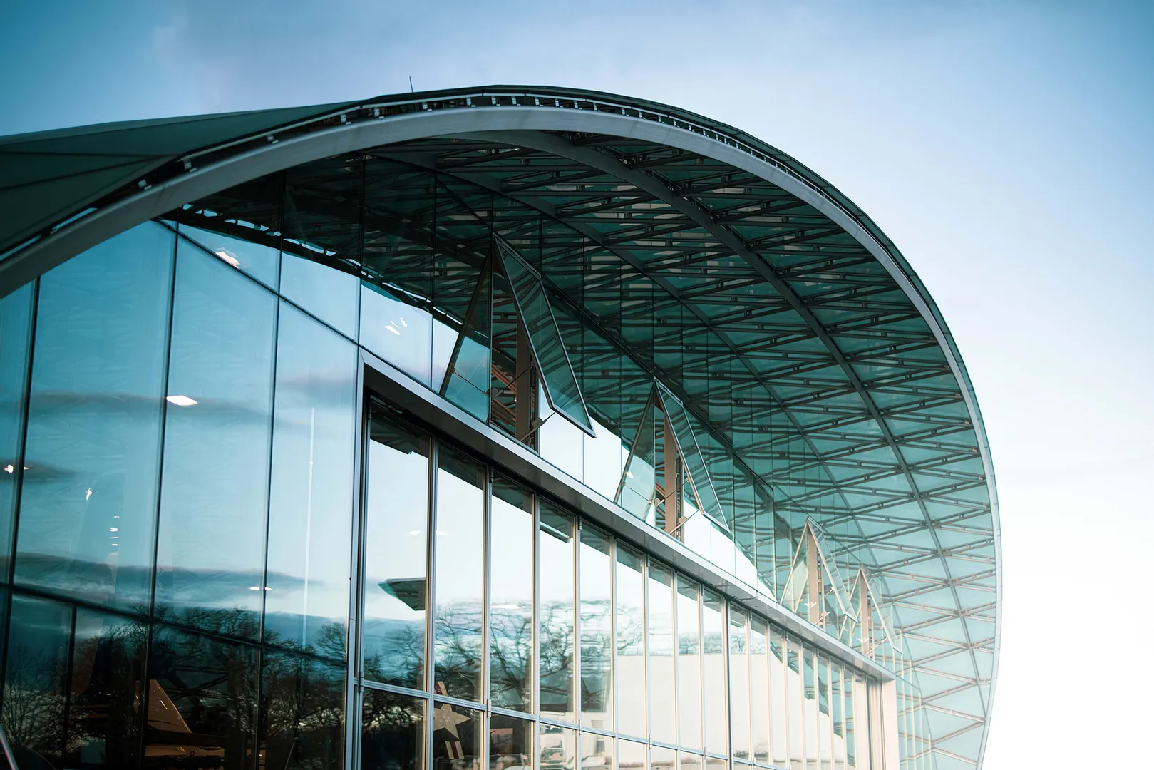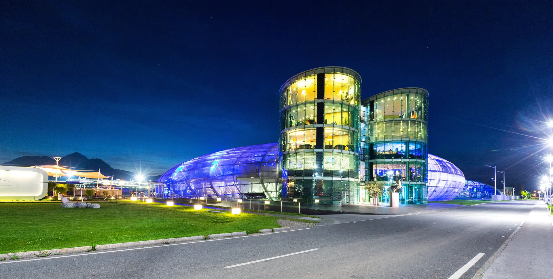 Das architektonische Konzept des Hangar‑7, moderne Technik mit den mythischen Träumen vom Fliegen zu verbinden, wurde mit großem Aufwand und hoher Bereitschaft zur Innovation umgesetzt. Nicht nur, dass in Planung und Bau die Erkenntnisse eines Windkanal-Tests eines Modells des Gebäudes einflossen - das schräge Stahl-Glas-Ellipsoid, das sich frei schwebend über 100 Meter Länge und 67 Meter Breite spannt, definiert völlig neue Grenzen des statisch Machbaren.