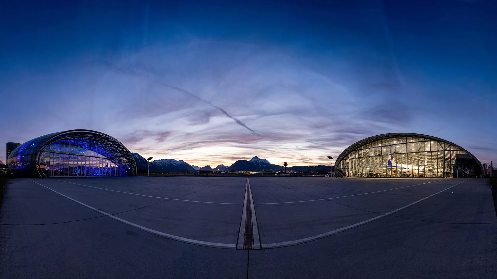 Die Überbauung von insgesamt 64.300 Kubikmeter Rauminhalt – unter anderem mit 380 Tonnen Spezialglas – fand am 22. August 2003 mit der Eröffnung des Hangar‑7 ihren Abschluss. Danach bezogen die Flugzeuge der Flying Bulls das wohl spektakulärste Zuhause, das Flugzeuge jemals bezogen haben.